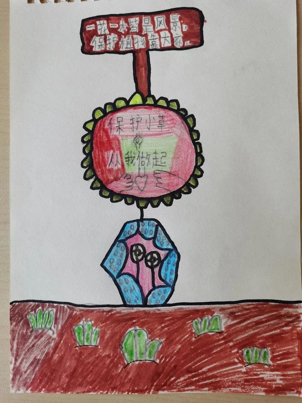 高年级的小朋友不仅感受植物的美好,而且展现了爱护植物的担当,他们积极倡议爱护植物,精心设计标志牌,用自己的力量保护着学校的植物,保护着地球的未来。